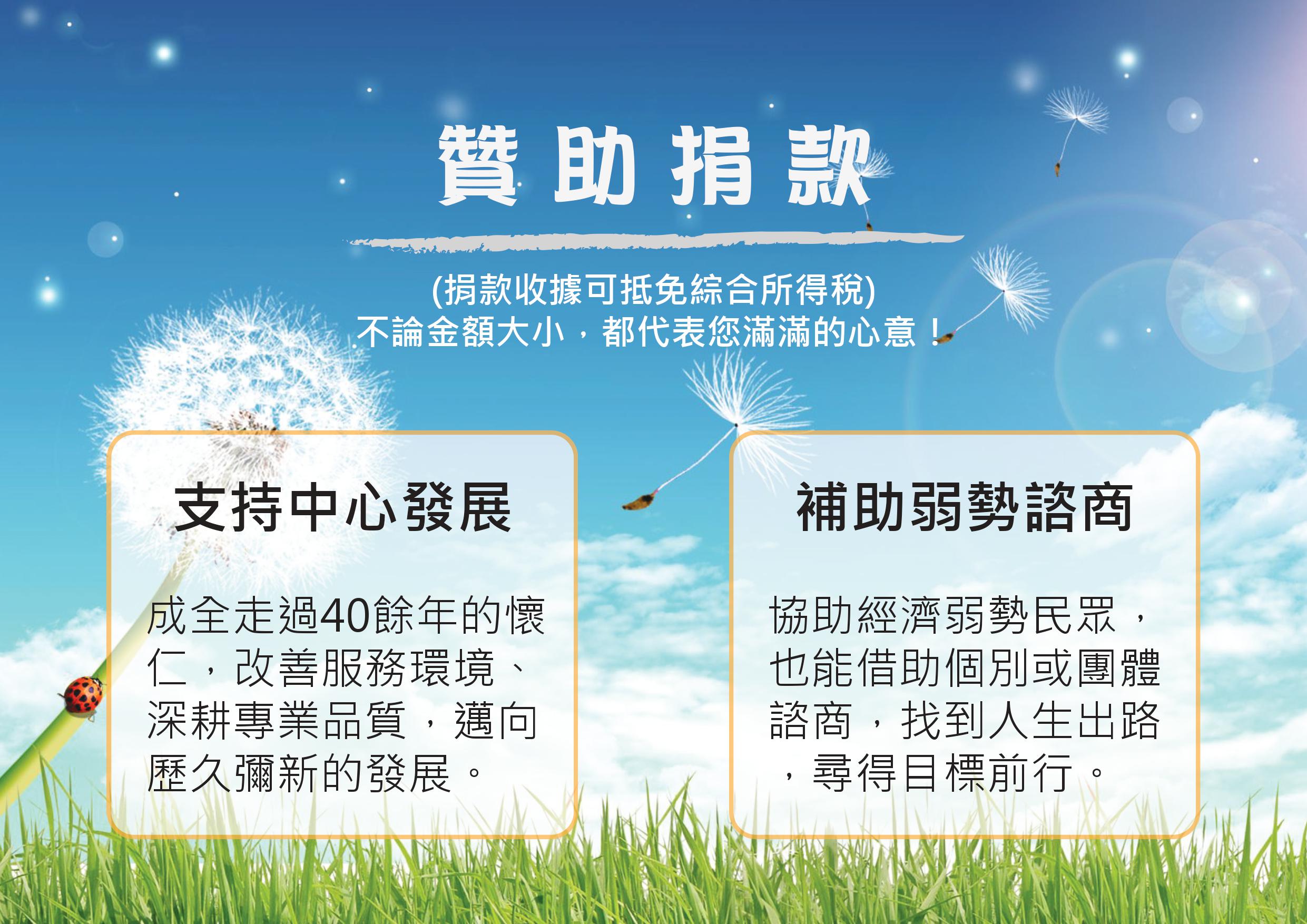 捐款用作補助清寒家庭諮商會談之用。贊助辦法有兩種: